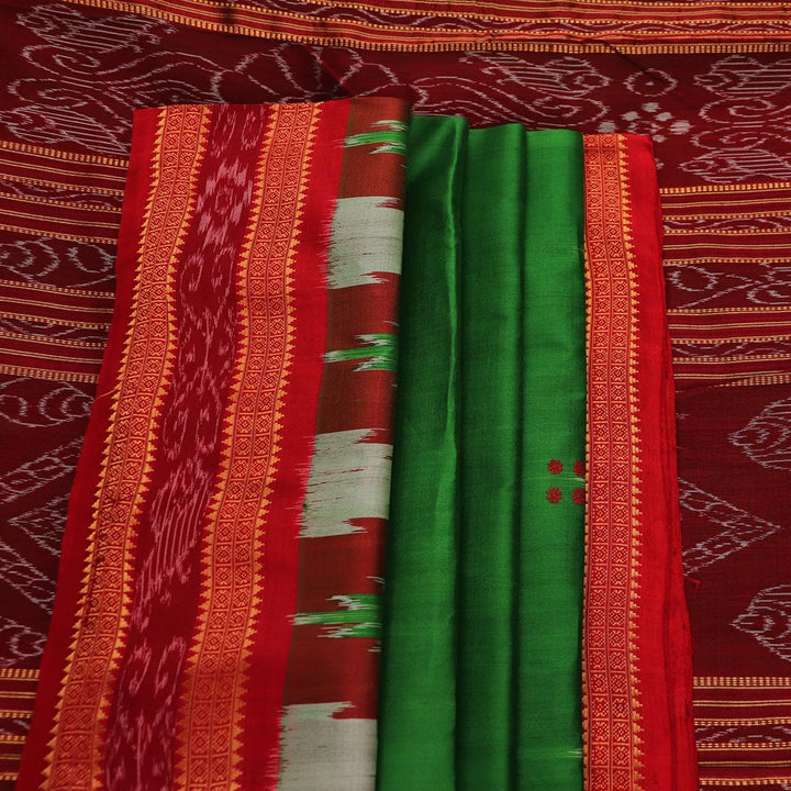 Discover the Enchanting Beauty of Green and Red Handloom Sambalpuri Ikkat Silk Saree