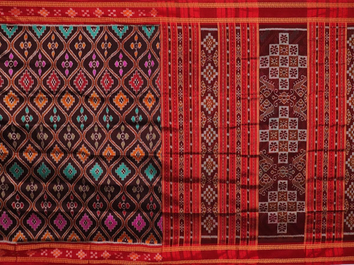 Discover the Enchanting Beauty of Brown and Red Handloom Sambalpuri Ikkat Silk Saree