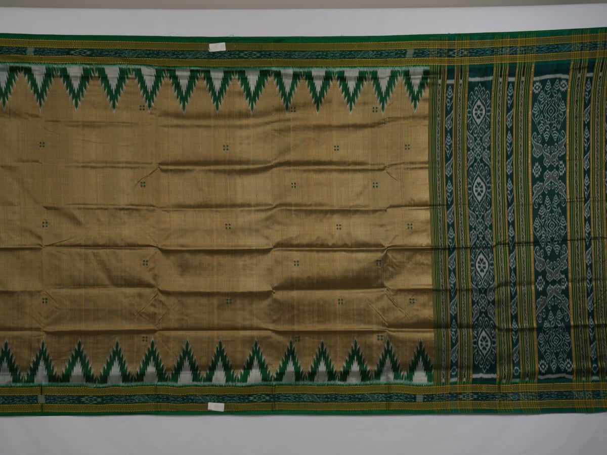 Discover the Enchanting Beauty of Brown and Green Handloom Sambalpuri Ikkat Silk Saree