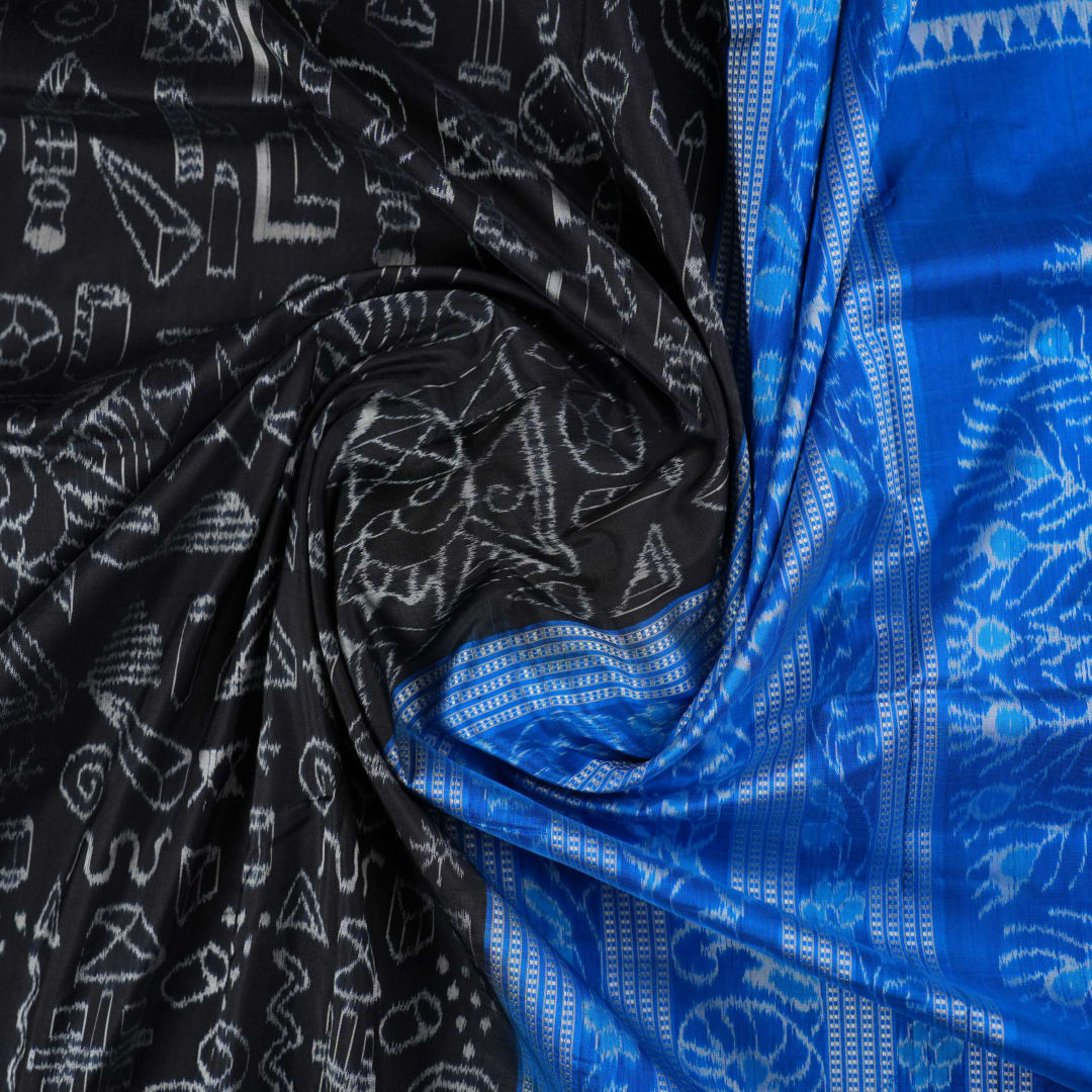 Discover the Enchanting Beauty of Black and Blue Handloom Sambalpuri Ikkat Silk Saree