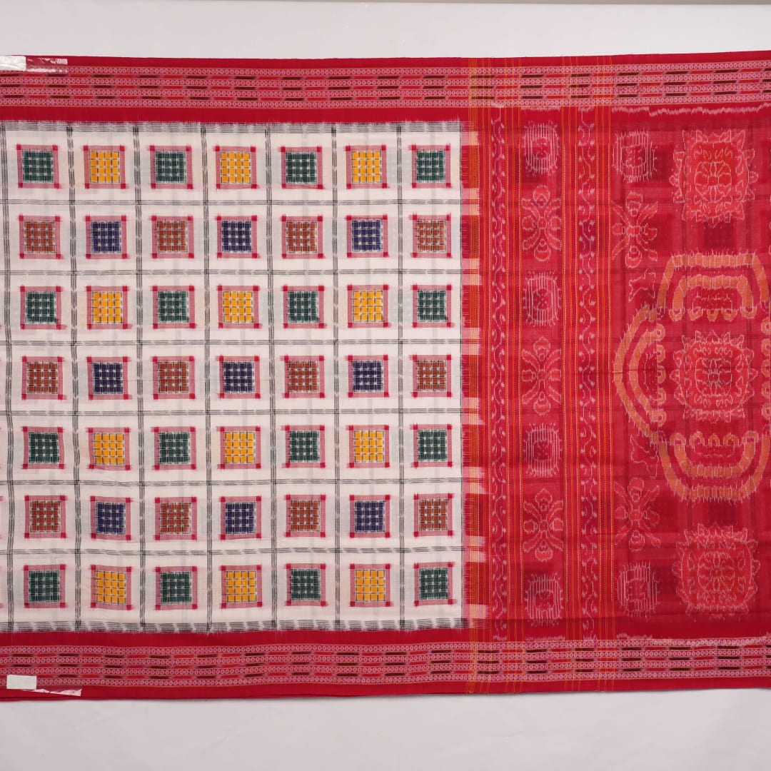 Experience the ethereal grace of this pristine White Sambalpuri Cotton Saree, framed by a striking red medium border that speaks of traditional elegance. Hand-woven by master artisans in Western Odisha, each intricate motif represents the timeless Bandha technique, offering a breathable yet sophisticated drape. This saree seamlessly blends heritage craftsmanship with a contemporary aesthetic, making it a soulful addition for the woman who values authenticity.