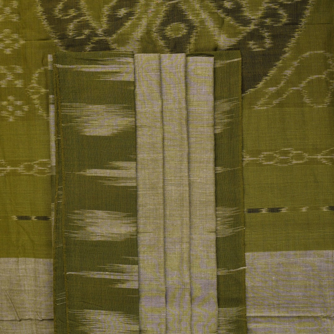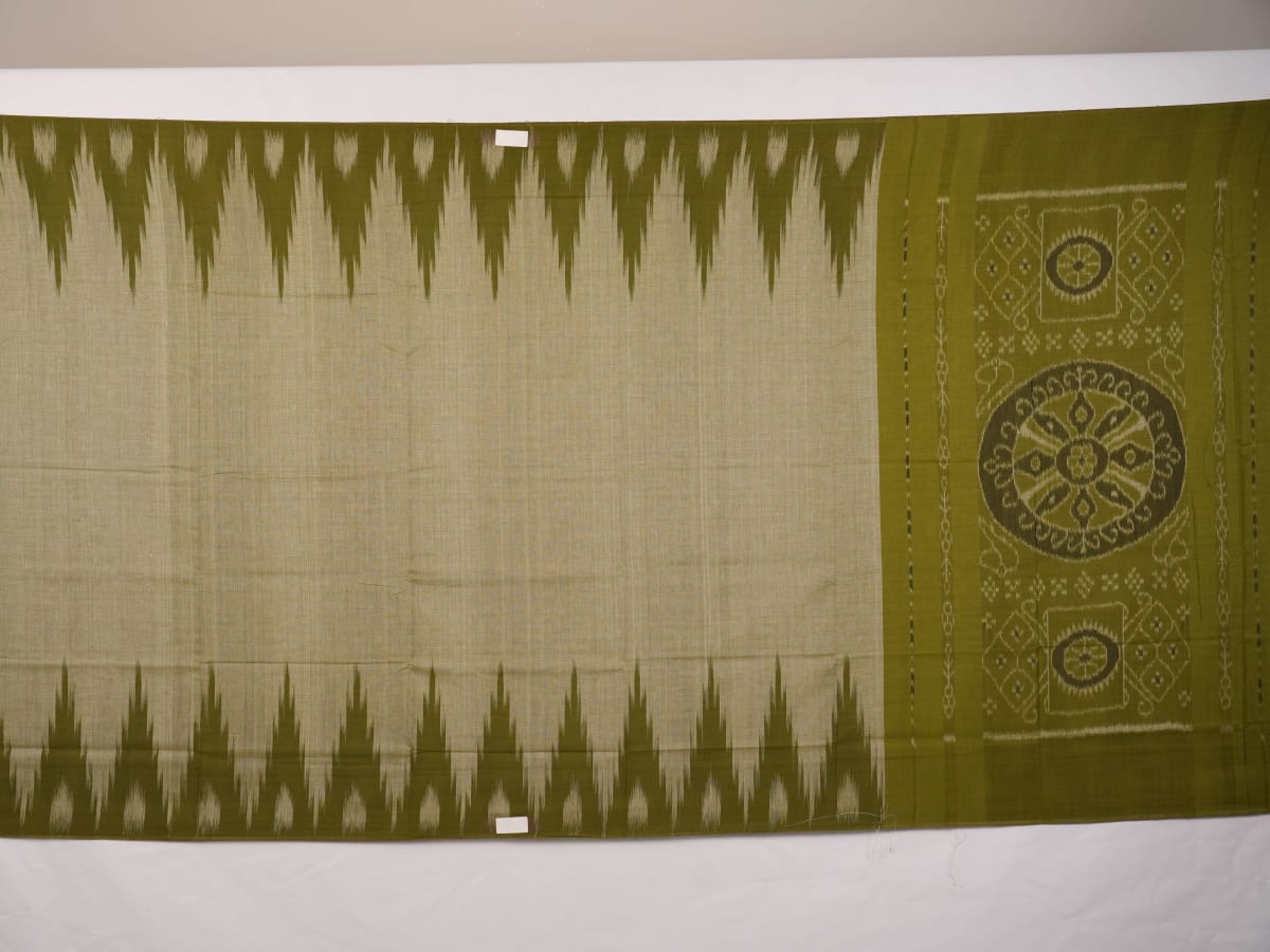 Discover the understated elegance of this emerald green Sambalpuri cotton saree, a testament to the quiet sophistication of Odisha’s handloom heritage. The minimalist plain body allows the wide, intricately woven border to take center stage, showcasing the meticulous craftsmanship of our master weavers. Designed for the modern woman who appreciates subtle luxury, this breathable cotton masterpiece offers a perfect blend of comfort and traditional grace for your daily professional endeavors.