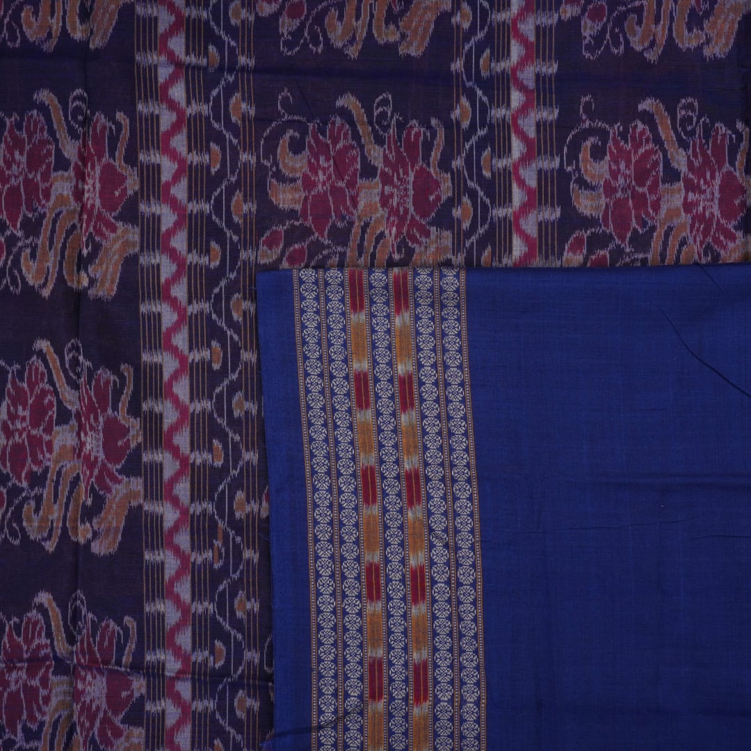 Experience the soulful artistry of Odisha with this handwoven Sambalpuri cotton saree, where deep maroon meets a striking blue border. Each motif is a testament to the meticulous bandha technique, narrating a story of heritage and timeless elegance that resonates with the modern professional. Designed for the woman who carries her culture with pride, this breathable cotton masterpiece offers unmatched comfort without compromising on sophisticated style.