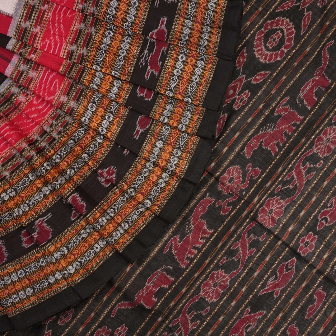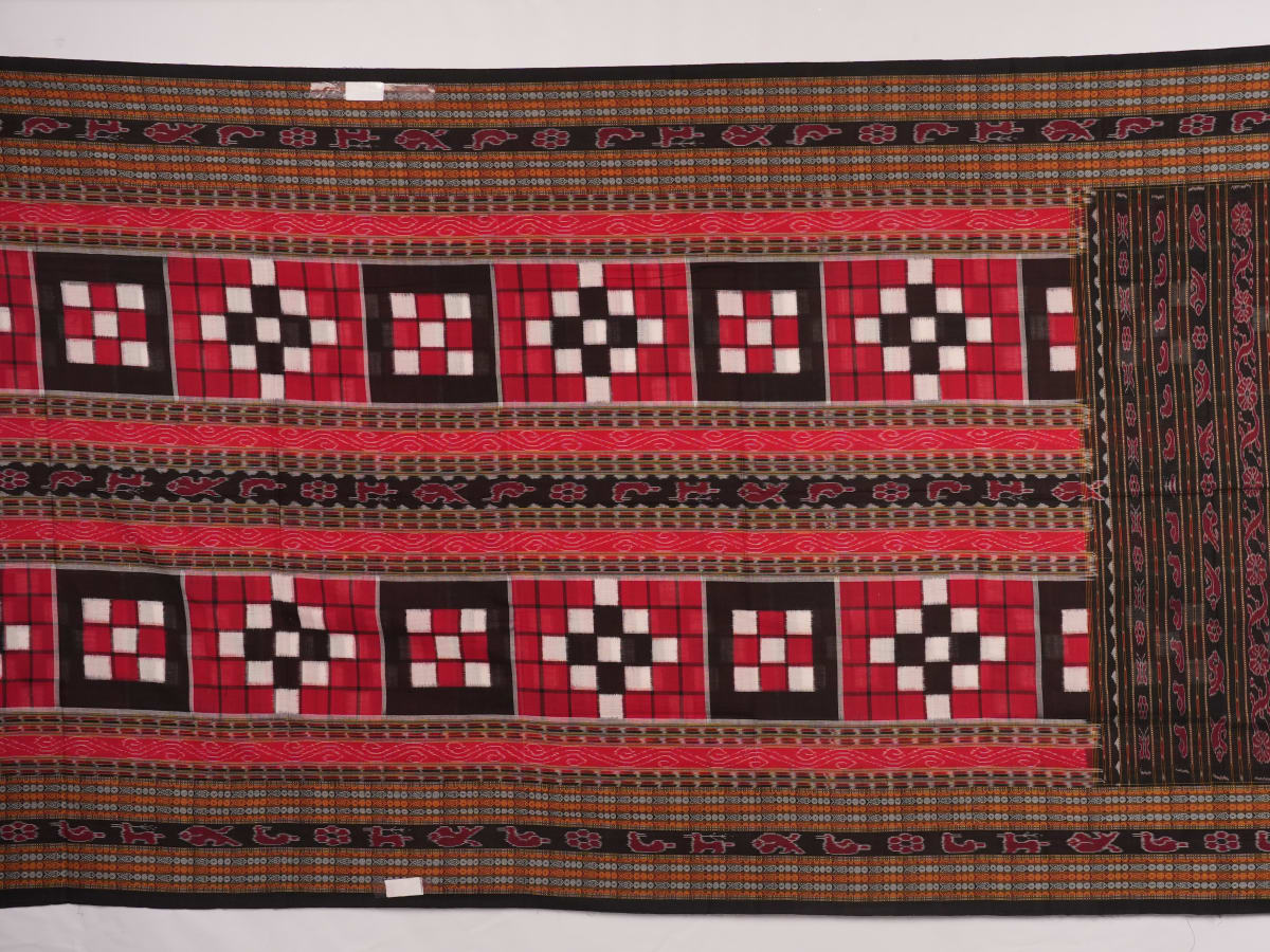 Experience the regal charm of Odisha's weaving heritage with this stunning Maroon and Black Sambalpuri Cotton saree. Featuring the iconic Pasapalli pattern, a tribute to the ancient game of dice, this piece showcases the meticulous precision of the traditional Bandha technique. The wide, dramatic border adds a touch of modern sophistication to an ancestral masterpiece, making it a perfect choice for the discerning woman who carries her culture with pride and effortless grace.