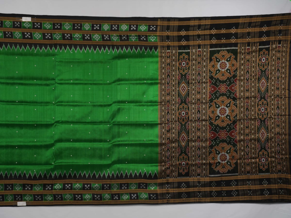 Discover the Enchanting Beauty of Green and Black Handloom Sambalpuri Ikkat Silk Saree